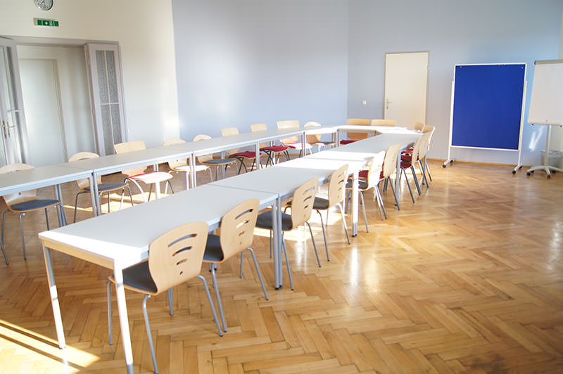 Seminarraum 1 53,16 22 Tische & Stühle 45,00 90,00 Beamer, CD-Player, Overhead-Projektor, TV-Gerät, Videoplayer VHS + DVD, Videocamera, Projektionswand, Pinnwände, Flip-Chart, Verdunklungsmöglichkeit, Wlan